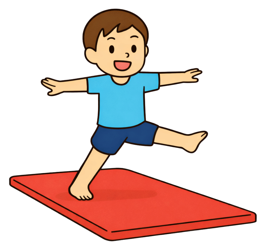 運動の基礎となる「見る力(ビジョントレーニング)」や「体の芯(体軸)」を養い、鍛えるメニューを取り入れています。不器用さの根っこにある感覚を育てることで、体操だけでなく日常生活での動きやすさにもつながります。